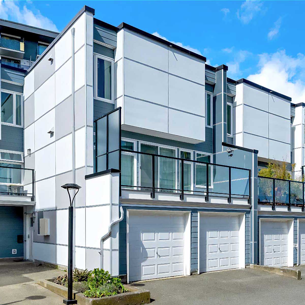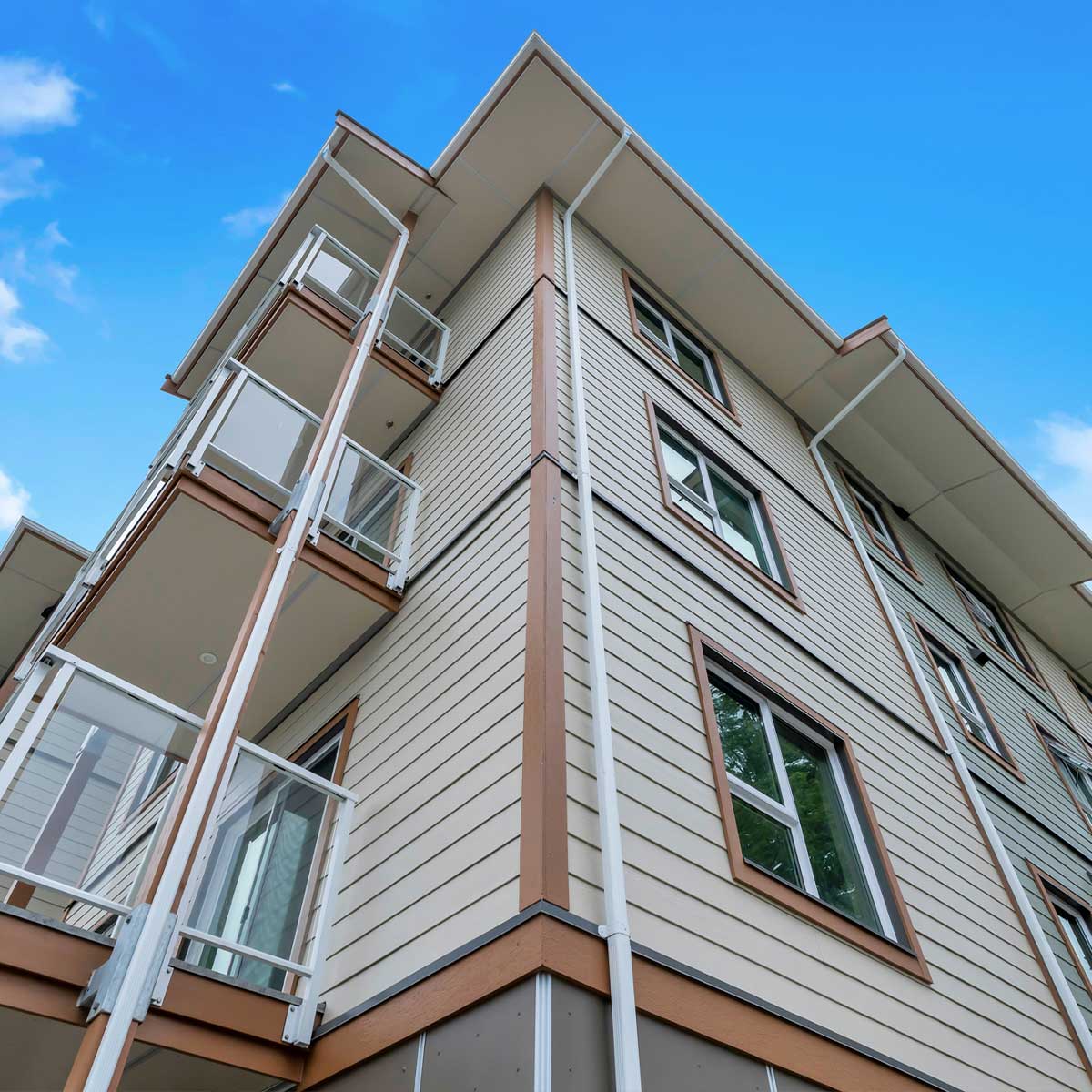 Fibre Cement Paneling, PVC plank, and Acrylic Stucco Finishes