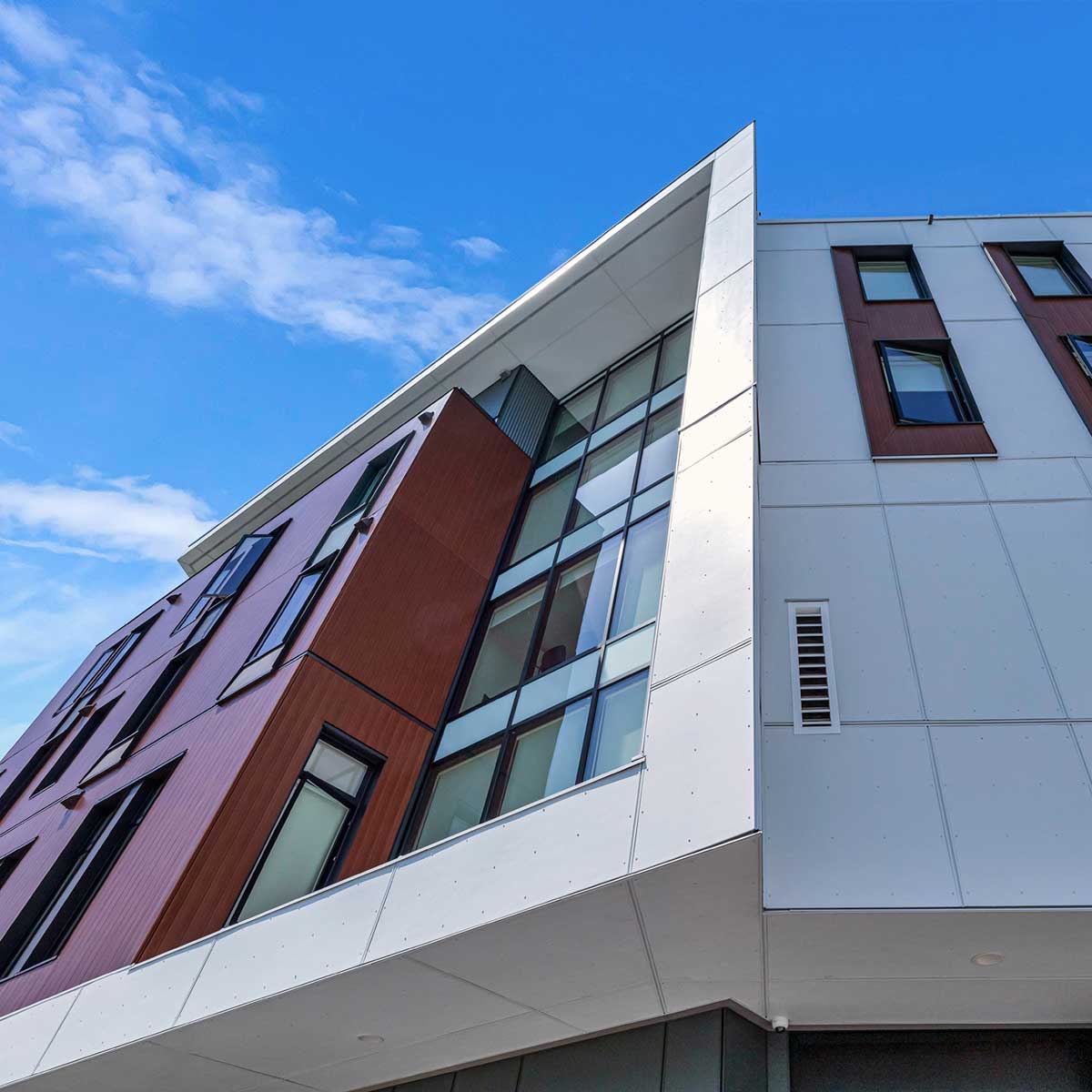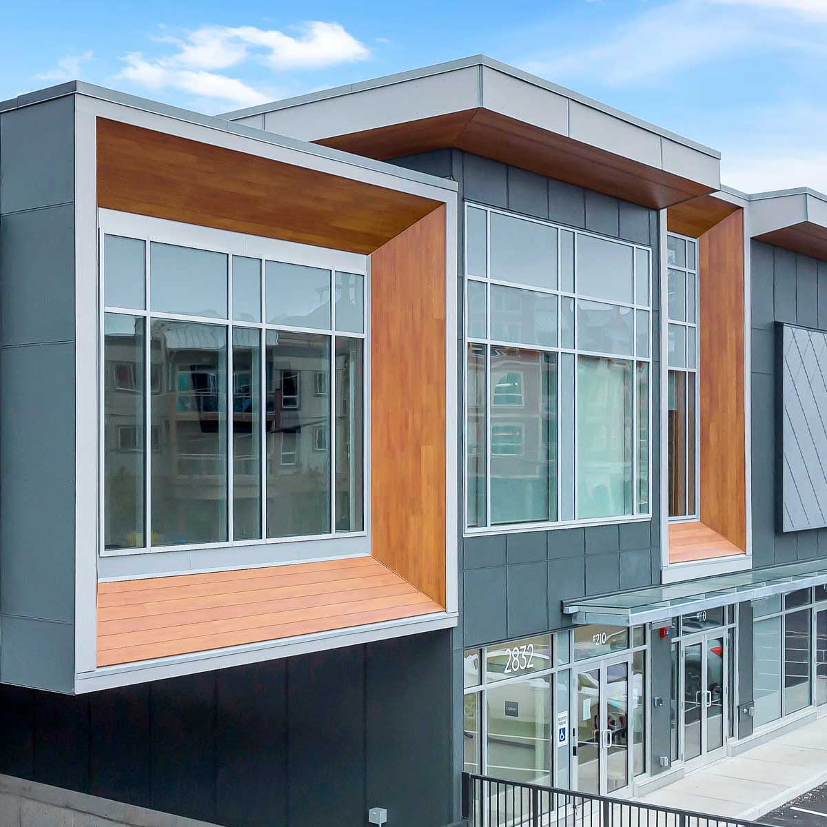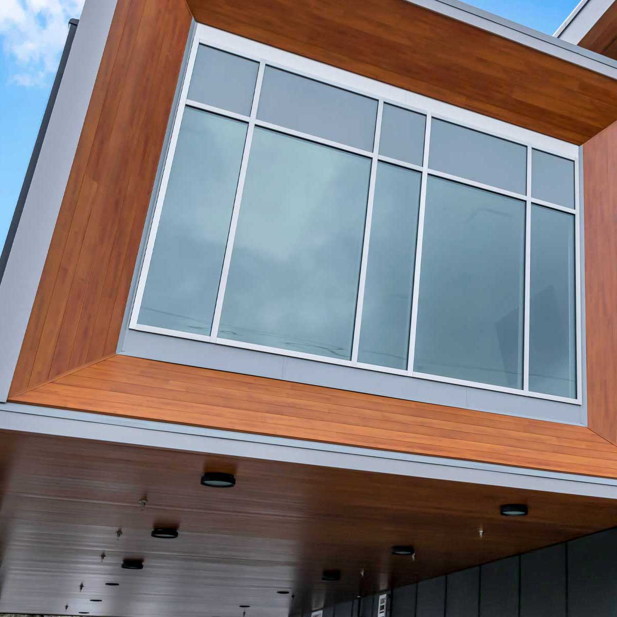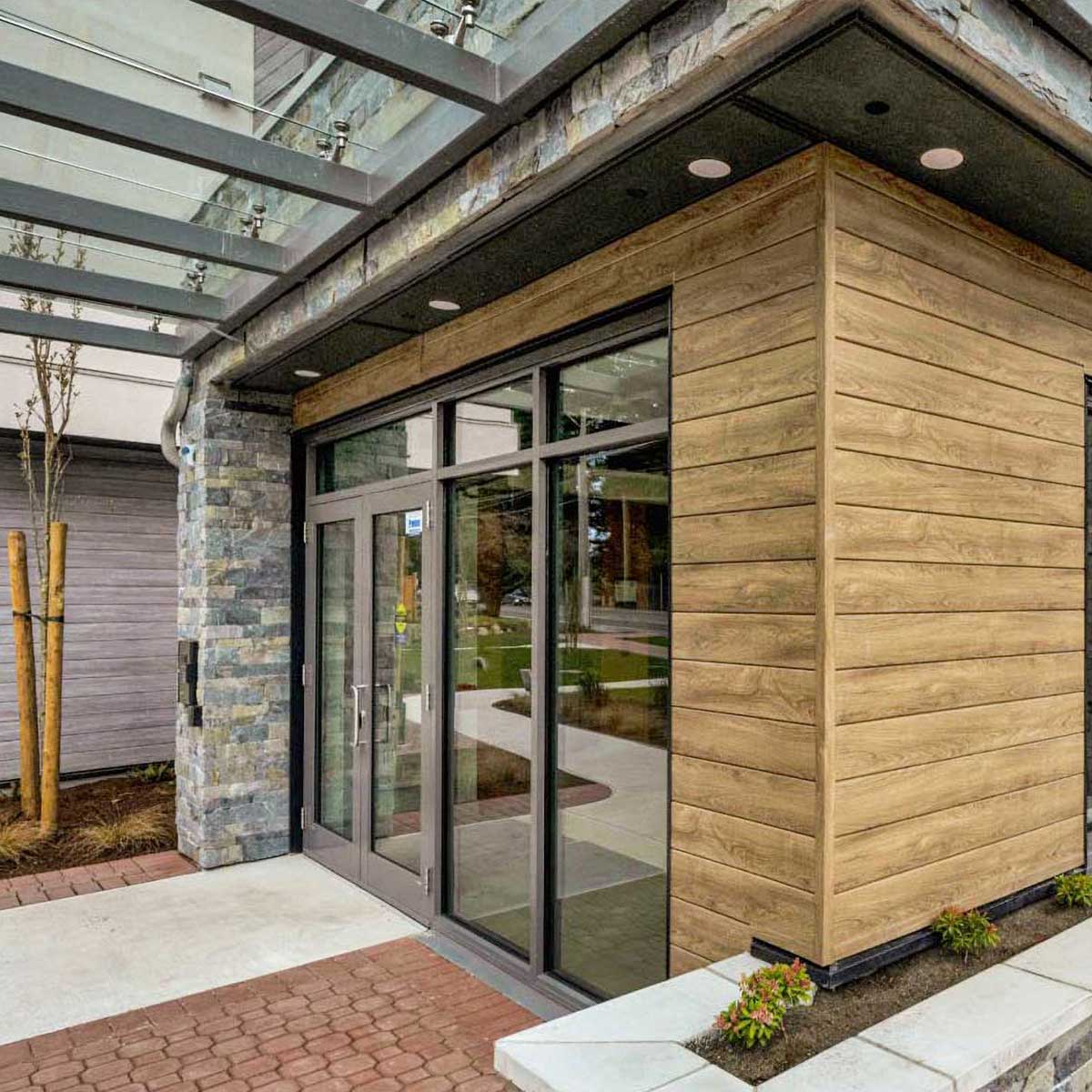 Fibre Cement Paneling, ACM paneling, and Extruded Aluminum Plank Soffits