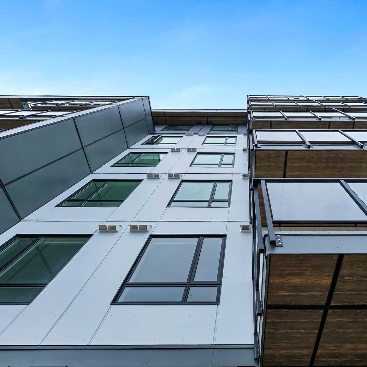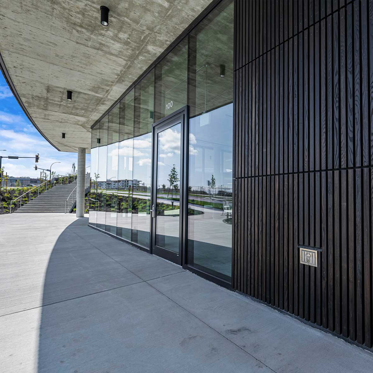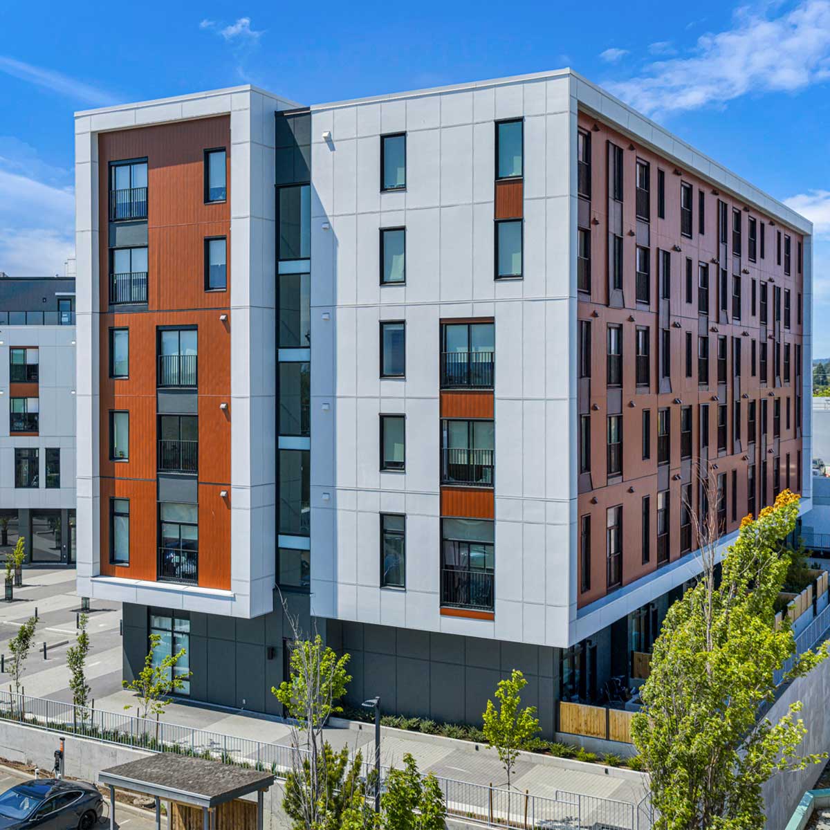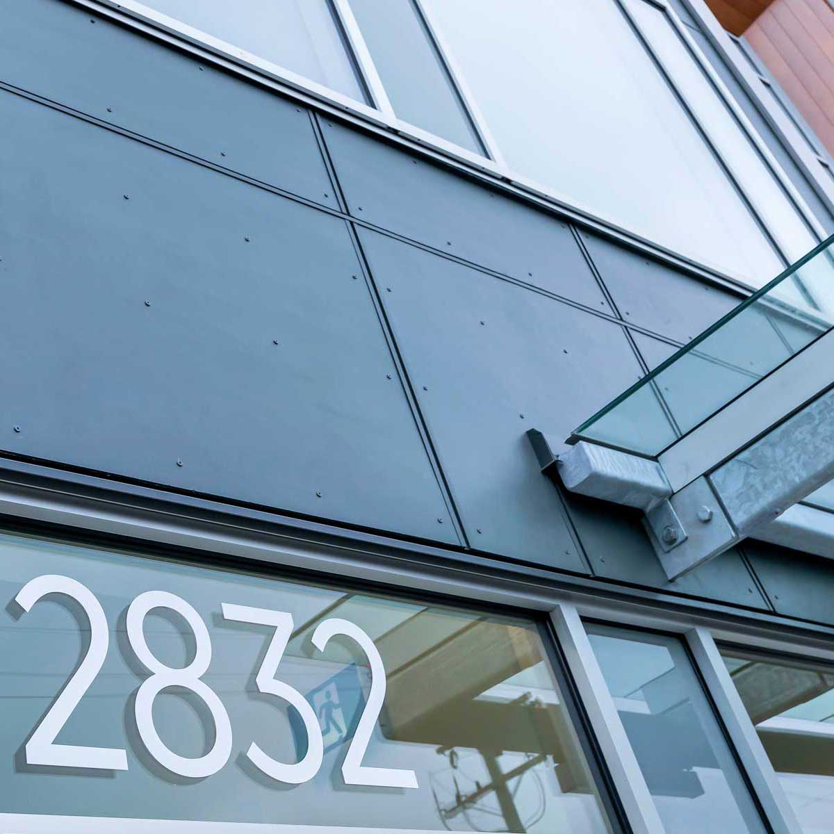 Fibre Cement Paneling, ACM paneling, and Extruded Aluminum Plank Soffits